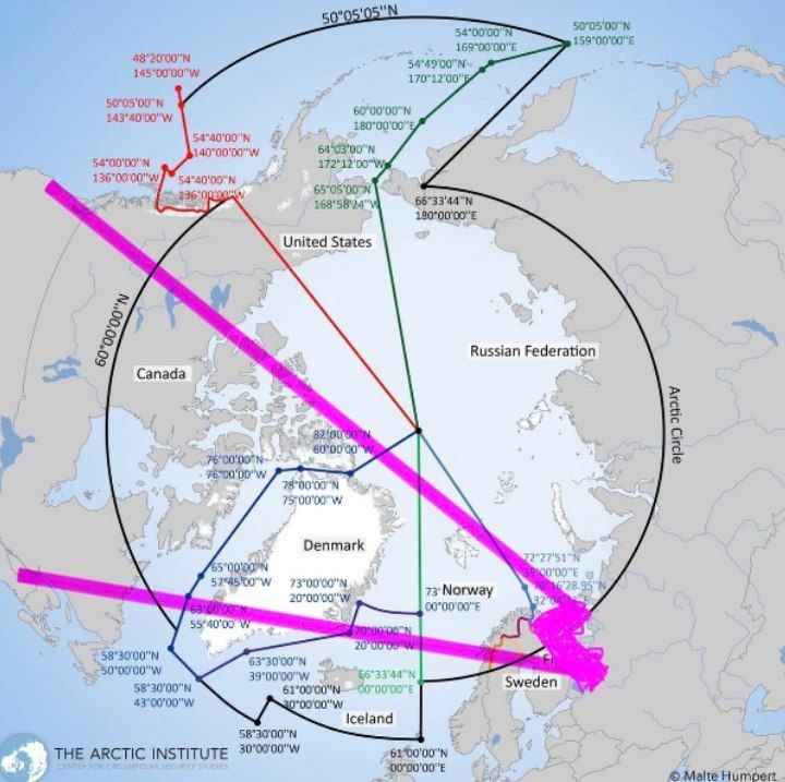 Гренландия — на карте. Почему Гренландия? Потому что Москва разместила почти все свои стратегические военные активы на Кольском полуострове, граничащем с Финляндией. Именно здесь находятся шахты российских МБР, базы подводных лодок и стратегические бомбардировщики. Если посмотреть на траекторию полета (баллистического или с двигателем) с Кольского полуострова в любую точку континентальной части США, то все пролетает над Гренландией. Гренландия — это театр военных действий, где происходит любой стратегический обмен между Вашингтоном и Москвой. Если вы хотите перехватить баллистическую ракету, лучшая точка для этого — апогей, верхняя точка траектории полета. Кратчайший путь для перехватчика к апогею лежит непосредственно под апогеем. Именно там находится Гренландия. Таким образом, не говоря о том, что должно здесь произойти, вот почему администрация Трампа говорит, что им нужна Гренландия для национальной безопасности. Кроме того, открывается Северный проход через Арктику, и вскоре китайские грузовые суда начнут курсировать через Арктику в Роттердам. Это быстрее, чем Суэцкий канал, и корабли не ограничены размерами «Суэцмакс», поэтому торговля между Китаем и ЕС значительно ускорится. Это означает, что китайские подводные лодки также будут выходить под воду в Северную Атлантику, ЕСЛИ ОНИ ЕЩЕ ЭТОГО НЕ ДЕЛАЮТ. Следовательно, северо-восточное побережье Гренландии служит не одной, а двум важнейшим стратегическим целям национальной безопасности США.