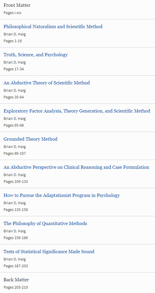 Brian D. Haig (2018), Method Matters in Psychology: Essays in Applied Philosophy of Science, Springer.