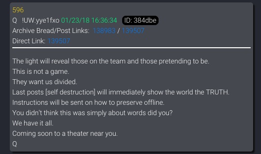 As we rap up tonight’s show and before we read Q’s Closing Message, I would like to remind everyone that this Saturday’s Q SCHQQL will be Cancelled due to the fact that Donald J Trump will be speaking Live in OHIO and I’m pretty sure that the entire World will be watching so we will be back with all of you next Tuesday, enjoy this final message from Q.