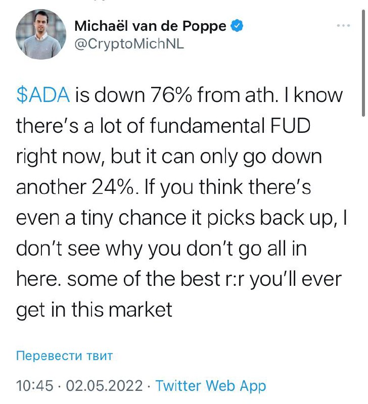 🗣 Голландский трейдер Михаэль ван де Поппе советует покупать ADA