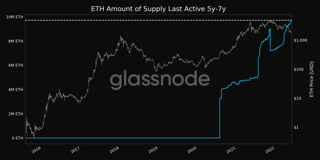 9 миллионов 709 тысяч 365.853 монет в последний раз перемещались со своих последних адресов в период от 5 до 7 лет назад