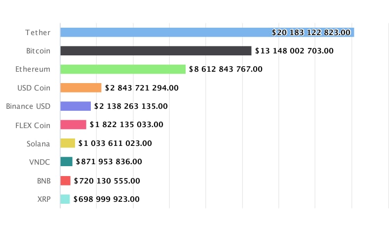 USDT, BTC, ETH, USDC, BUSD, FLEX, SOL, VNDC, BNB, XRP