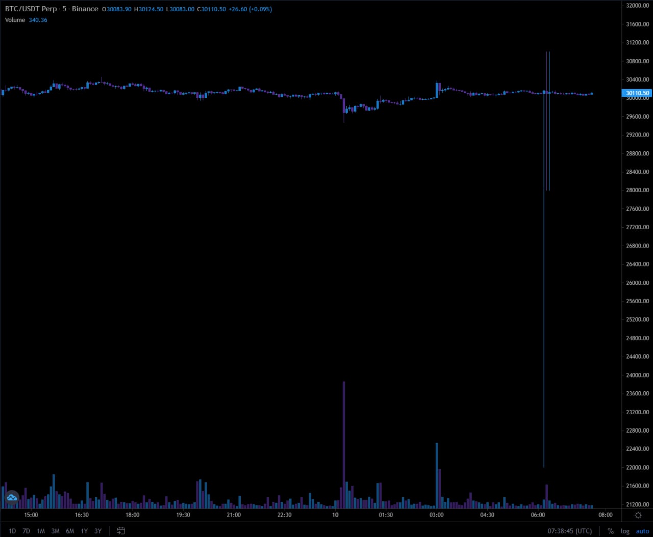 🧨 Некоторые пользователи Binance получили вот такую шпильку до $22000 по биткоину
