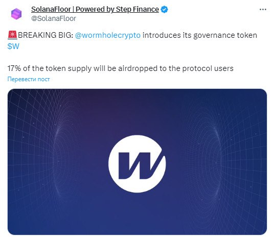 Токен получит тикер W, он будет существовать на блокчейнах Ethereum и Solana. 17% токенов будет направлено ранним пользователям протокола через раздачу в виде эирдропа.