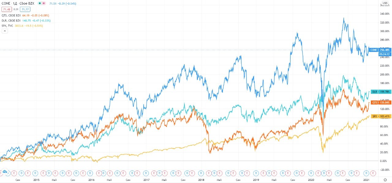Компания имеет хорошие перспективы органического роста благодаря устойчивому росту, ожидаемому в отрасли в ближайшие годы. Спрос на центры обработки данных определяется быстрым ростом объемов данных, развитием 5G, внедрением облачных технологий, автономные транспортные средства и искусственный интеллект, а также спрос на ИТ-аутсорсинг - данные факторы не изменятся в ближайшее время и должны поддерживать рост отрасли в долгосрочной перспективе.