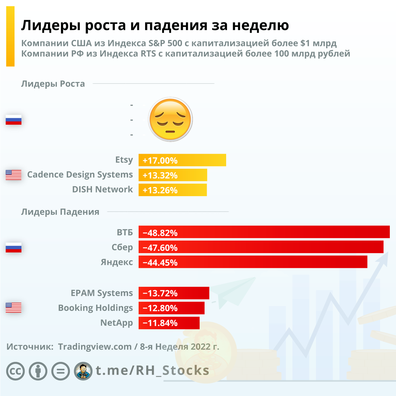 Лидеров роста на рынке РФ нет, есть кто не сильно упал. К примеру Ростелеком $RTKM упал всего на 10%