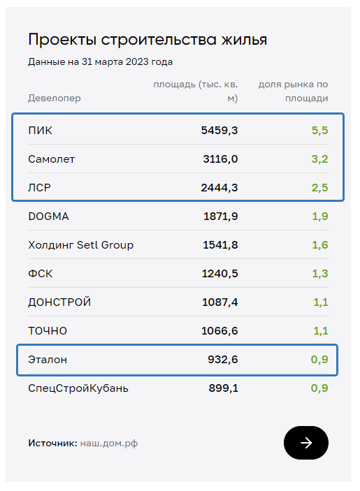 Не публикует результаты - это сразу минус. Тяжело понять. Что там происходит. Но компания преимущественно работает в Москве и Московской области. Где динамика спроса на новостройки пострадала не так сильно по итогам 2022 (разбирали ещё в Январе это), к тому же и снижение цен в Москве прекратилось.