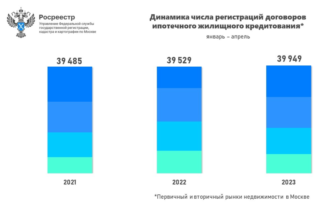 По итогам четырех месяцев установлен рекорд по количеству регистраций новых ипотечных договоров в Москве за все годы наблюдений