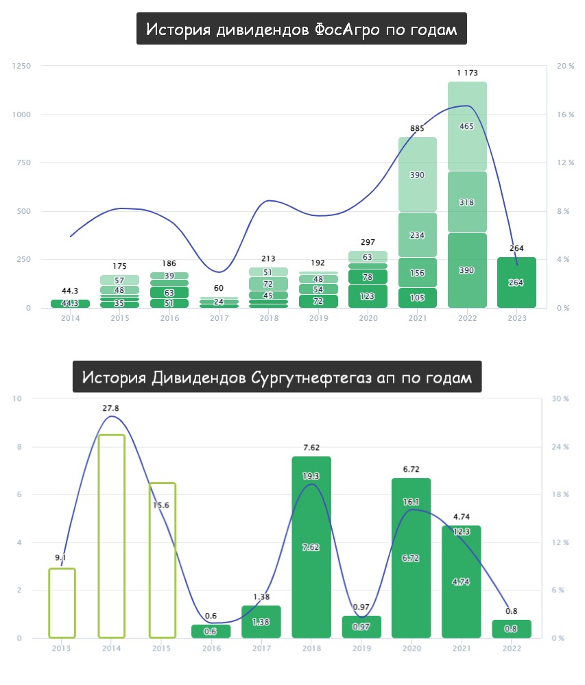 Из последних свежих примеров обвал на объявлении дивидендов по Префам Сургутнефтегаза $SNGSP, тогда "аналитики" которые не угадали как только не объясняли свои промахи. На мой взгляд расчёт без данных от компании и заявлению топ менеджеров сводился к подбрасыванию монетки (хотя курс рубля $USDRUB заранее предполагал не лучший сценарий)