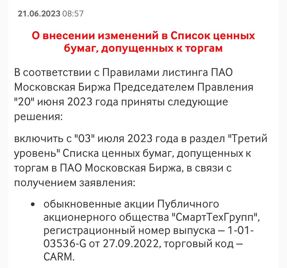 CarMoney (ПАО «СмартТехГрупп») выходит на IPO с 3 Июля и будет доступно под тикером $CARM на Московской Бирже