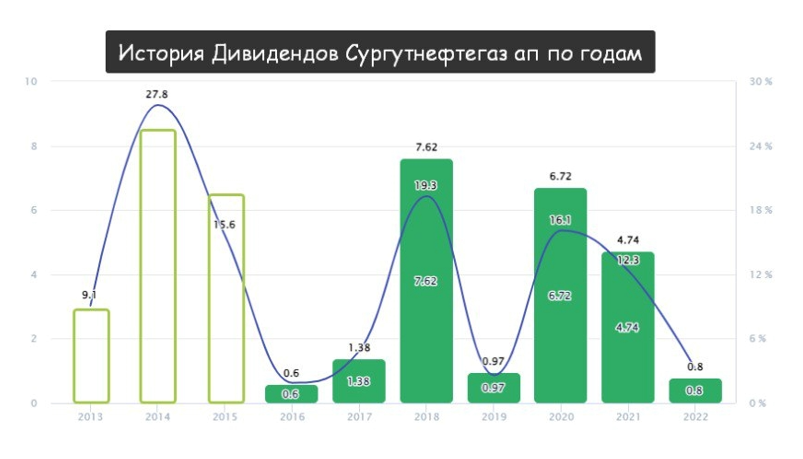 Представим, что вы подумываете о покупке Сургута в январе этого года. Вы ещё не знаете, что дивиденды отменят и не знаете, что курс ослабеет. Но можете это предполагать.