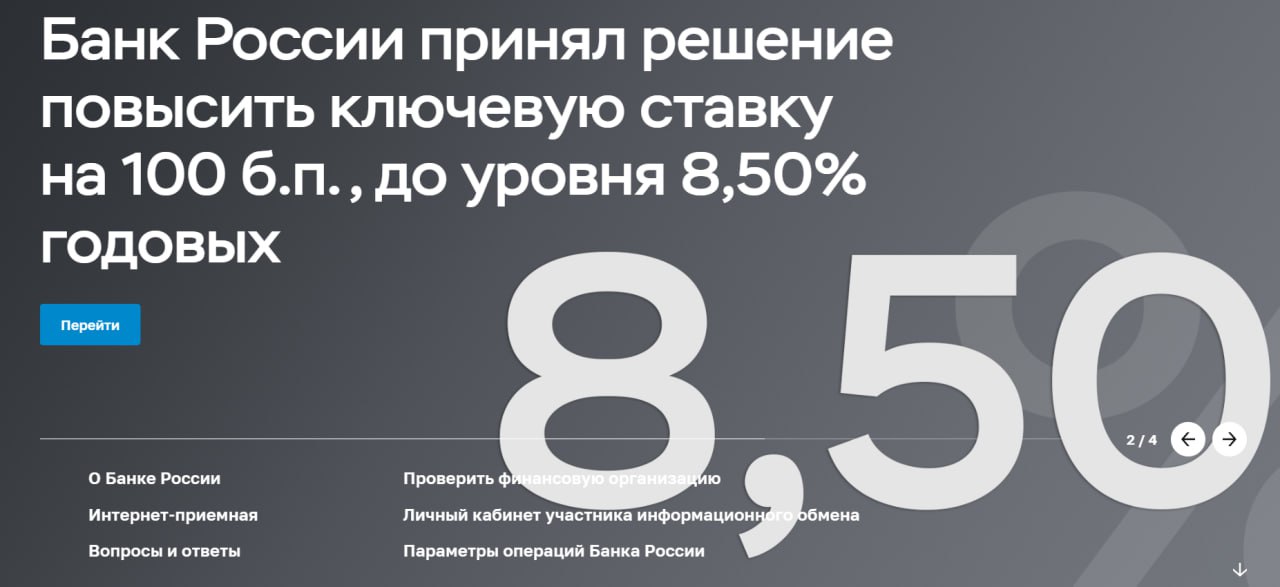 ⚡️Ключевая ставка — 8,5%