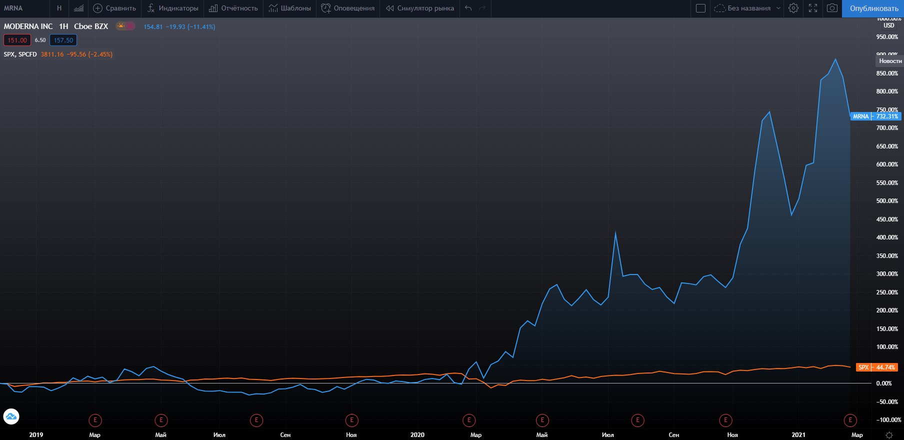 За 2020 компания выросла более чем на 700%. В 2021 компания прибавила еще 40%. На сколько Больше надо объявить предзаказов на Вакцину чтобы акции поднимались существенно выше? Инсайдеры компании Активно продают уже несколько месяцев акции, за последние 2 недели Февраля было продано более 6 млн акций. Хорошо, инсайдеры продавать могут по разным причинам, это не обязательно сигнал, но вот покупок инсайдерами вообще нет. Это заставляет задуматься.