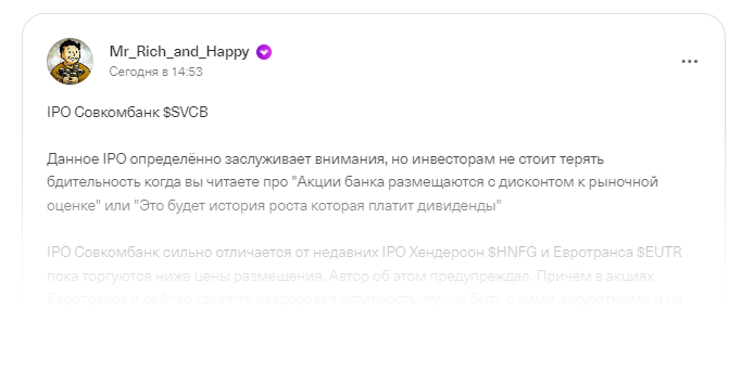 IPO Совкомбанк $SVCB