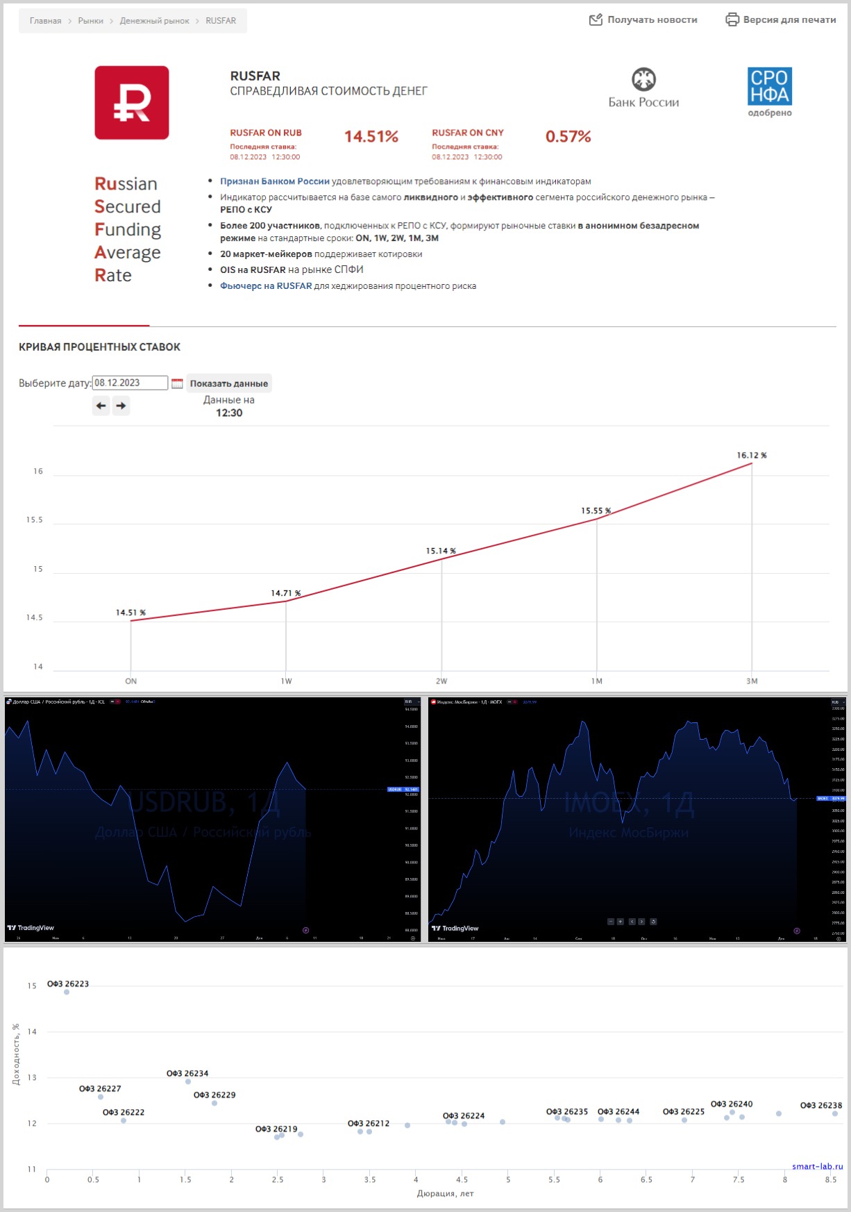 Так трёхмесячная ставка RUSFSAR выше 16%. Что это за ставка и как получается мы разбирали в Сентябре в рамках большого блока посвящённому фондам денежного рынка. Эту ставку называют ещё «Справедливая стоимость денег» и фонды вроде ВИМ Ликвидность $LQDT ориентируются на неё по доходности.