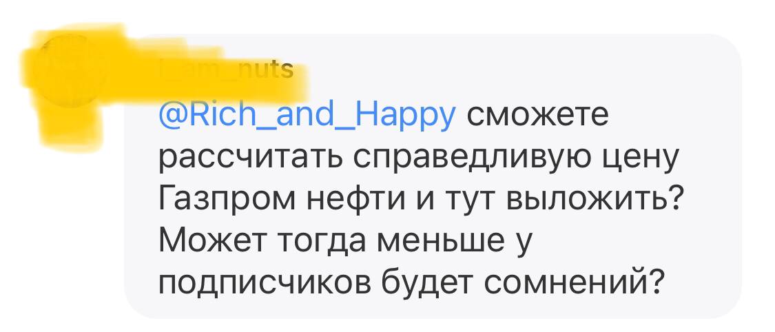 «… или купил вчера Газпромнефть, а сегодня она падает, не жалко разве, можно же купить дешевле. Зачем ловить падающие ножи? Или так и скажи хер знает где дно будет…»