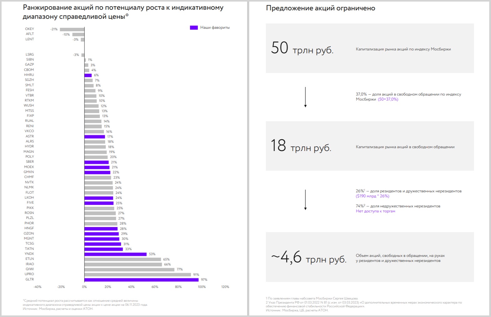 Мы это тоже уже обсуждали, замкнутый финансовый контур РФ со всеми вытекающими последствиями. Интересная оценка в ~4,6 трлн доступных акций (см скрин). Просто для сравнения на вкладах россиян сейчас ~40 трлн руб.