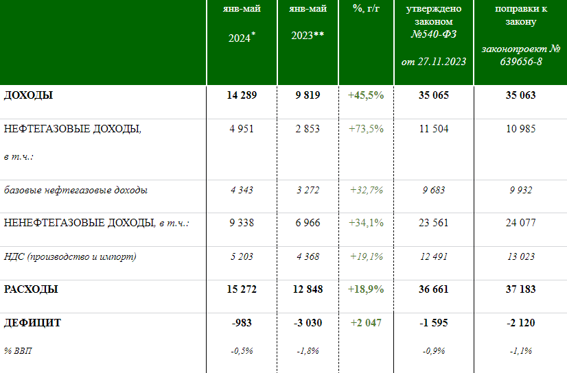 Минфин представил предварительную оценку исполнения бюджета за первые 5 месяцев (январь—май).