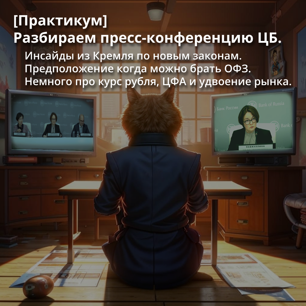 Сегодня для подписчиков платного проекта на Бусти и Тинькофф вышел текст Практикум, где учимся правильно смотреть и подмечать важную информацию из пресс-конференции ЦБ.