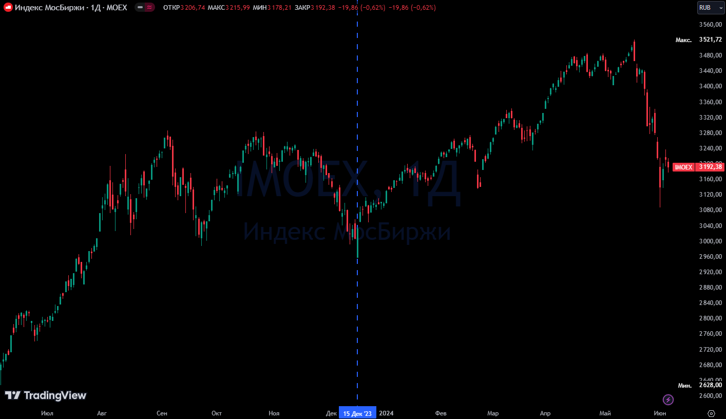 Май оказался месяцем распродаж. С локальных максимумов Индекс МосБиржи упал на 8,5%, если смотреть по текущему году, то индекс полностью нивелировал рост марта, апреля и начала мая. А если взять картинку чуть шире, то мы вернулись в боковик прошлого года и сейчас находимся на тех же уровнях, что были летом и осенью 2023.