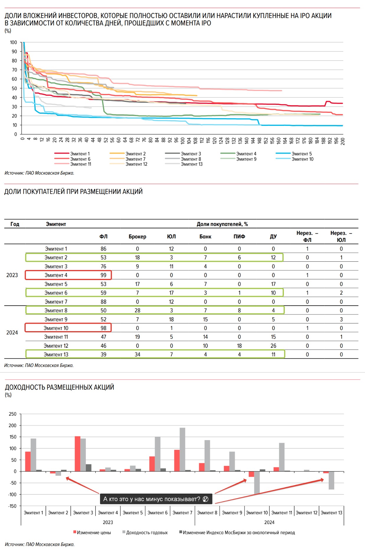 Перевожу: Там где нет институционалов, там в среднем и физику ловить нечего 😄 Ещё можно вспомнить, что там где много институционалов физикам дают аллокацию в несколько процентов. Так и живут организаторы IPO под лозунгом: "Третий сорт не брак! Отдадим физикам". К примеру в IPO АГ Кристалл доля физиков была близка к 100%, как говориться "счёт на табло".