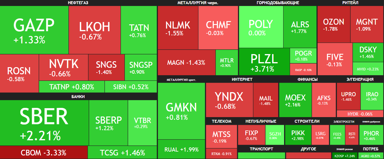 — Золото упало под давлением роста доходности облигаций и доллара. Золото примерно на 50% коррелирует с казначейскими облигациями, поэтому оно страдает при повышении процентных ставок. Ранее на этой неделе Золото выросло до самого высокого уровня за 3 месяца. Полюс Золото $PLZL, Polymetal $POLY, Петропавловск $POGR так же снижаются
