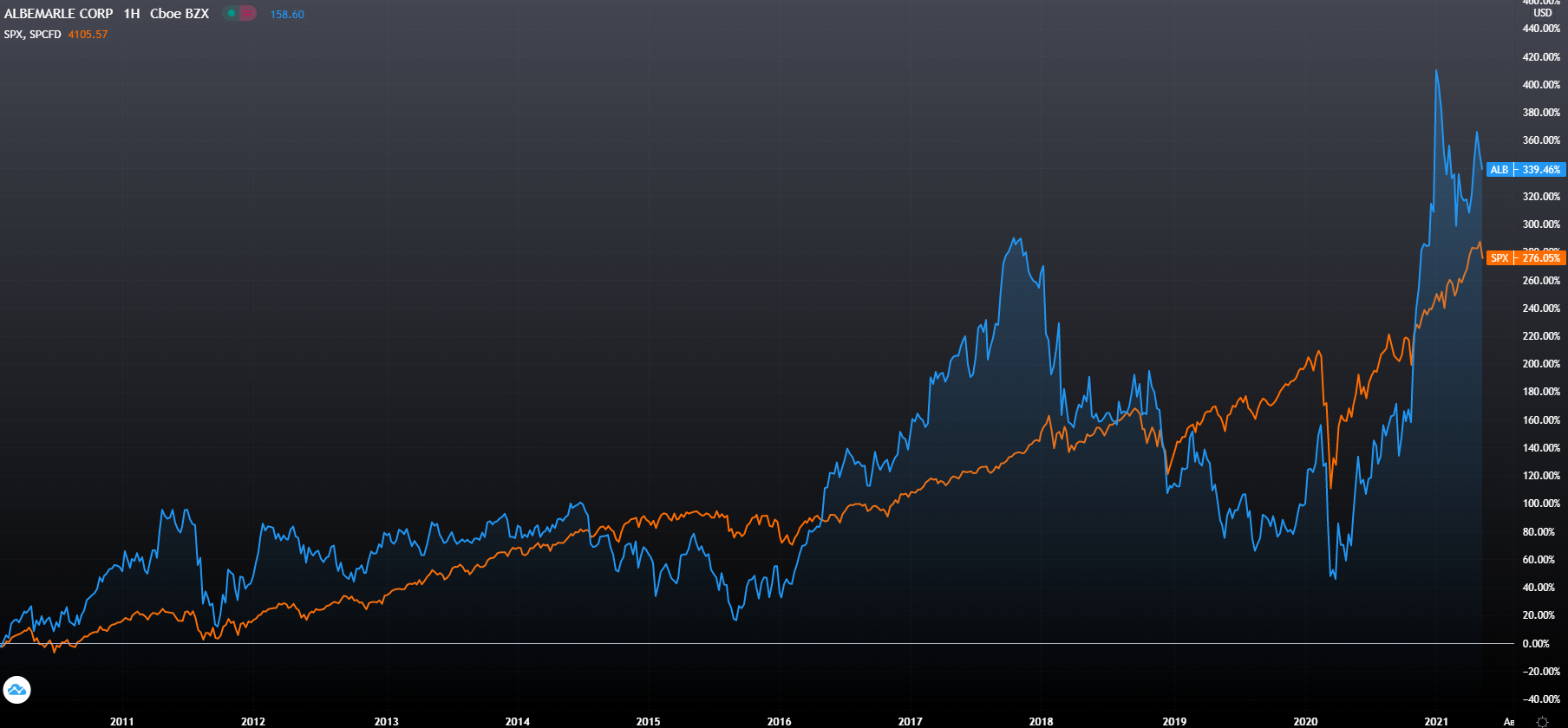 Albemarle интересная компания, если вы уже её купили, то определённо стоит её держать, так как она является лидером по производству Лития и активно наращивает производство, а потребление Лития будет кратно расти ближайшие несколько лет. Но вы должны помнить, что компания работает в циклической отрасли , продавая свой литий, который мало чем отличается от лития Livent или любого другого производителя