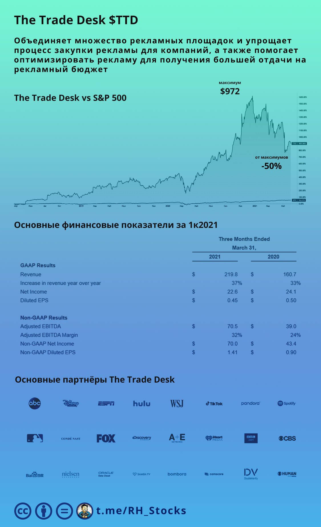 На сайте Trade Desk заявляет о 225+ партнеров, есть такие интересные имена как Spotify $SPOT или Baidu $BIDU