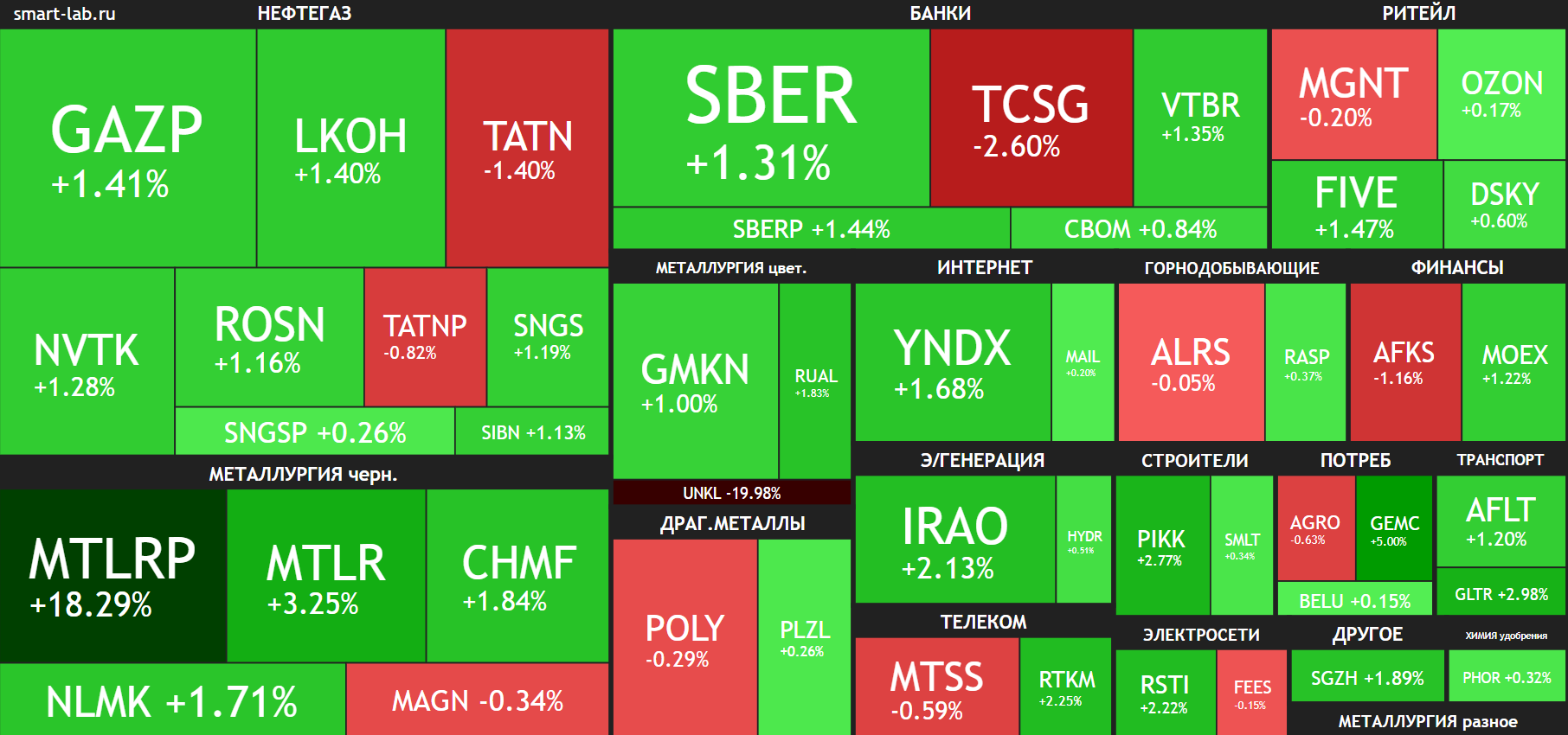 Нефть растёт, и весь фондовый рынок РФ растёт