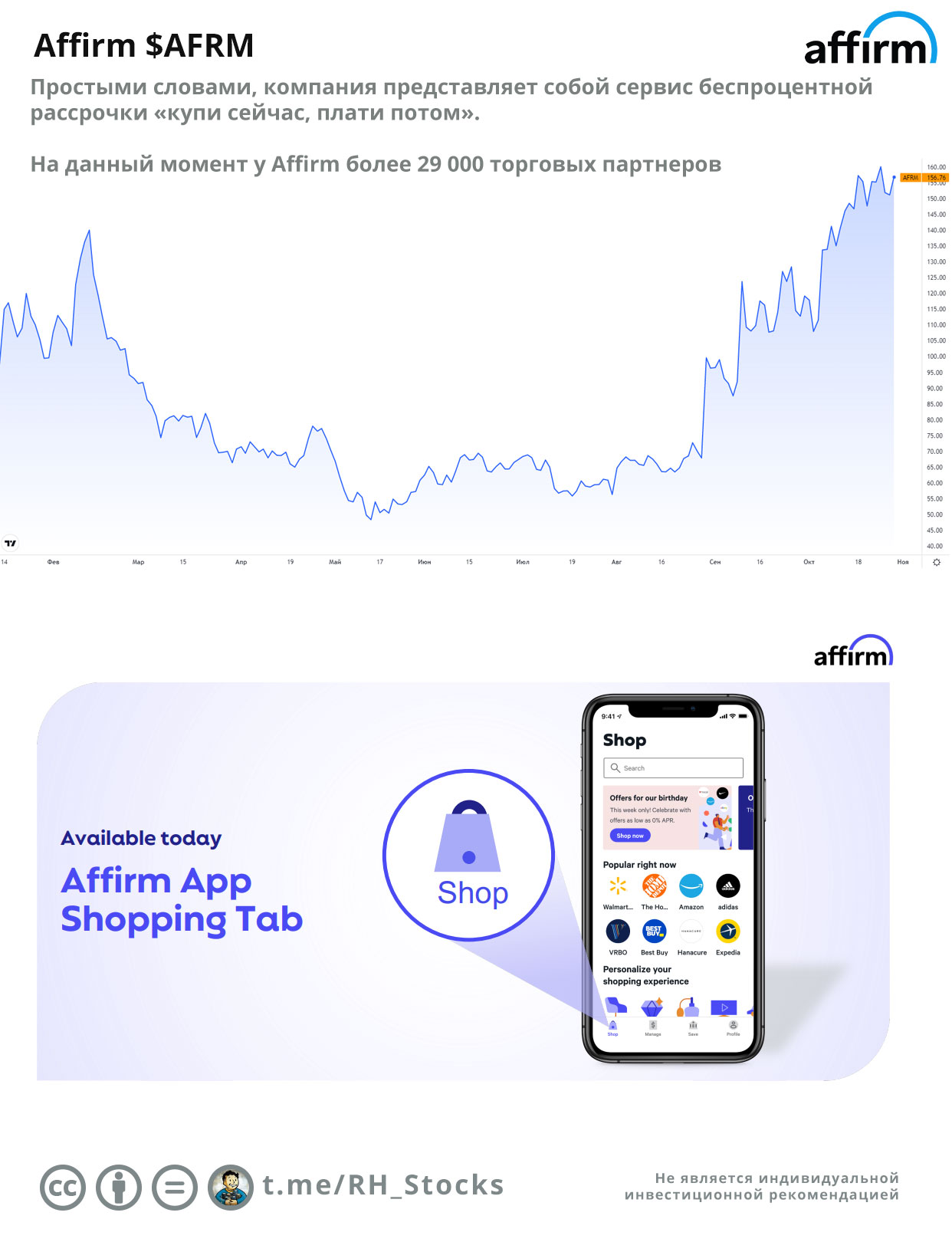 «купи сейчас, плати потом». На данный момент у Affirm более 29 000 торговых партнеров. Из последних знаковых компаний American Airlines $AAL и Target $TGT