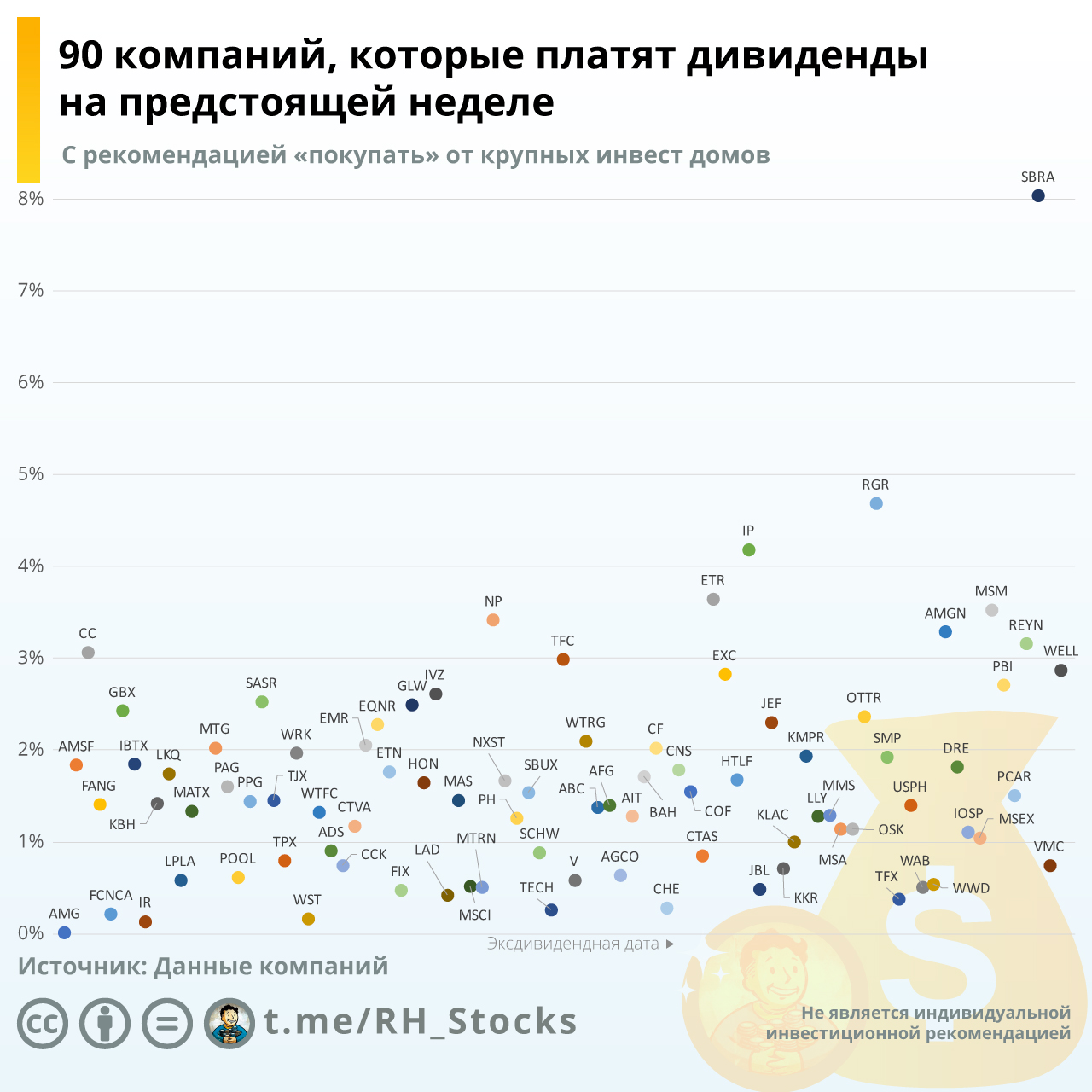 На Инфографике ТОП 30 компаний, который на предстоящей неделе платят дивиденды, это не все компании, а только те, по которым есть рекомендация покупать от крупных инвестдомов. Потенциальный рост и дивиденды приятное сочетание )