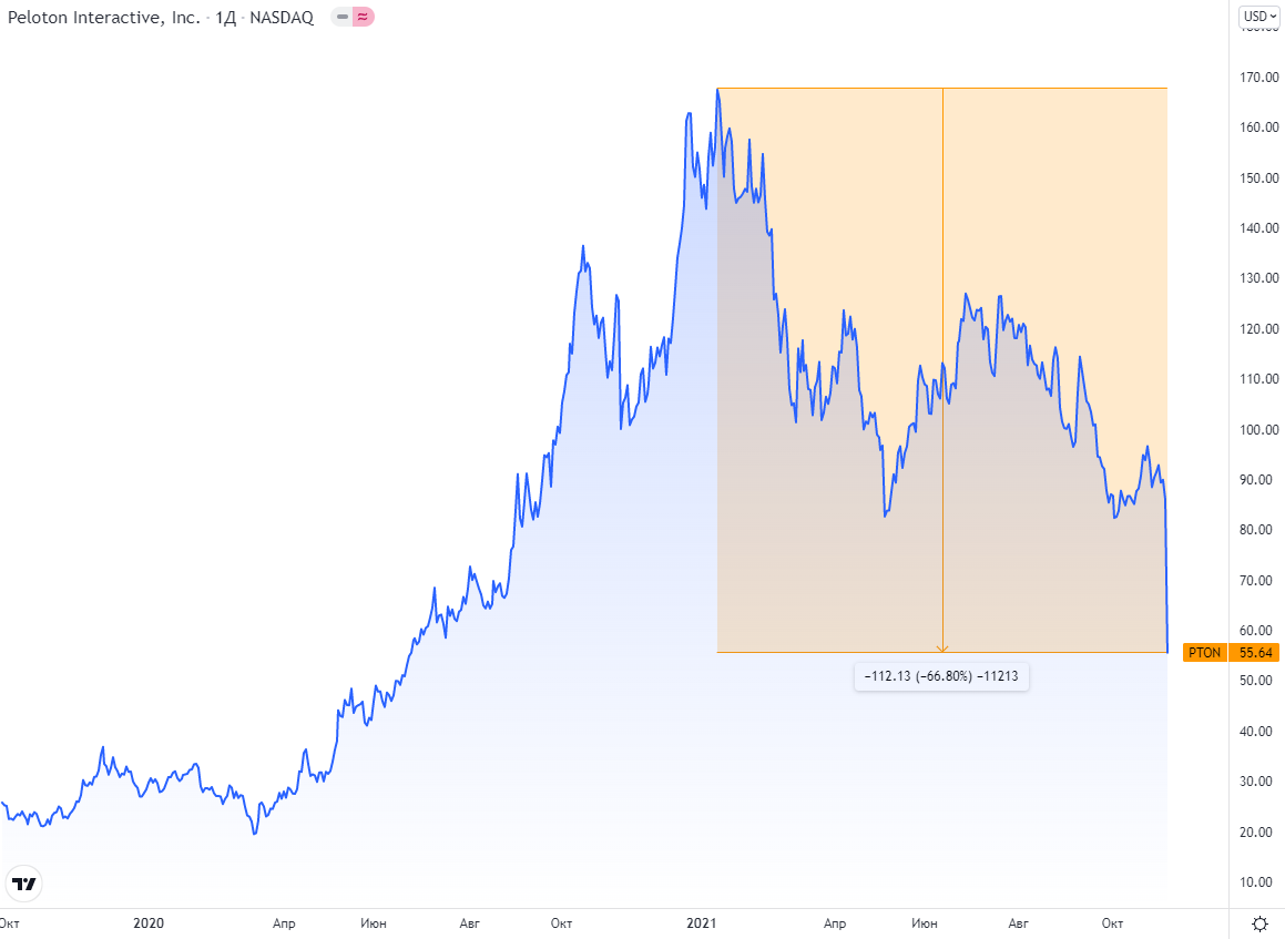 Что действительно произошло? Валовая прибыль Peloton упала до 12% с 39% годом ранее, в результате чего общий операционный убыток компании за квартал составил $360 млн