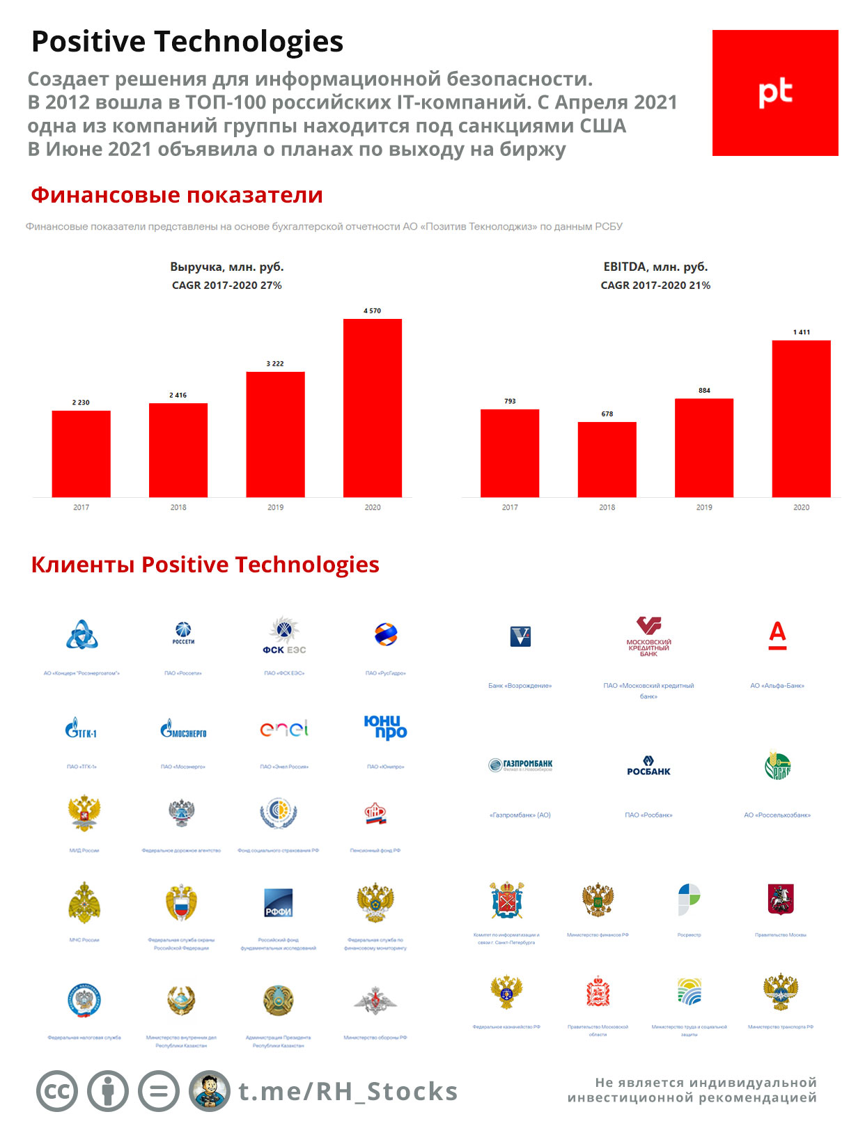 @Positive_Technologies (они тут есть) 19 лет создает решения информационной безопасности. По версии журнала Forbes вошла в топ-30 самых дорогих компаний рунета в 2020. С Апреля 2021 одна из компаний группы находится под санкциями США (важная веха для компании РФ). В Июне 2021 объявила о планах по выходу на биржу, но на рынок выходит не санкционная компания