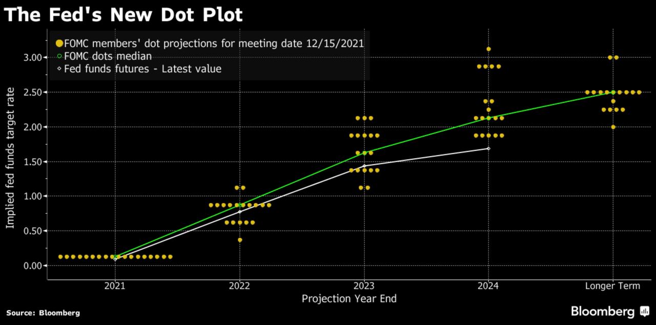 🤔 В ФРС ожидают 3 повышения ставок в 2022