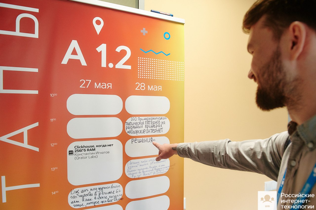 Друзья, пустые слоты в митапных оставлены специально, чтобы вы могли собраться с единомышленниками и обсудить узкую, но важную тему. Просто берите фломастер и вписывайте тему в свободное окошечко на ролапе у любой переговорки.