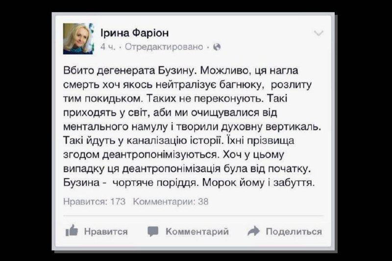 Как и король-солнце ящетаю, что женщин можно бить только цветком. Бабу Фару я бы треснул кактусом. Но не успел. Некто профессионально подстерег и стрельнул в орган, которым она озвучивала свой бред. Например, про русскоязычных бойов ВСУ. Ради такого записался бы в ВСУ. А потом обратно выписался. Но меня опердили. Была ли Баба Фара дюймовочкой? Рука-лицо, когда я представляю себе ее извращения над студентами. К счастью это политех. Вряд ли ухи технариев слышат в регистре ее мовно-фашистского бреда. А шо вона читала в политехе? Теорему Бандеры? Формулу Шухевича? Парадокс Петлюры? Хз.