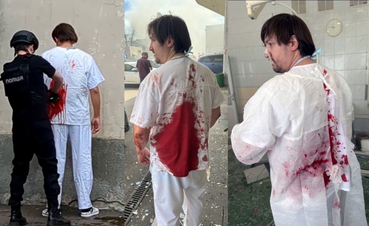 По сети разлетелся видос (слева), на котором поліціянт красит спину человека, похожего героя фильма про прилет по Охматдету, хирурга Олега Голубченко.