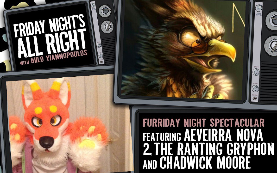 TONIGHT on FRIDAY NIGHT’S ALL RIGHT, it’s a furriday night extravaganza with @Aeveirra @TwoGryphon and Chadwick Moore on the social justice horrors tearing the furry community apart!