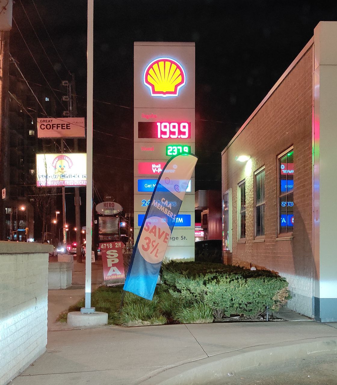 Сегодня ночью сделал фото новых цен на бензин в Торонто.