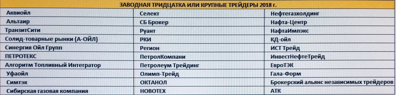 Методология и принципы формирования этого рейтинга не будут преданы огласке, однако настойчиво утверждаем, что приведённые ниже участники в 2018 г. были наиболее заметными и активными покупателями и продавцами топлива.