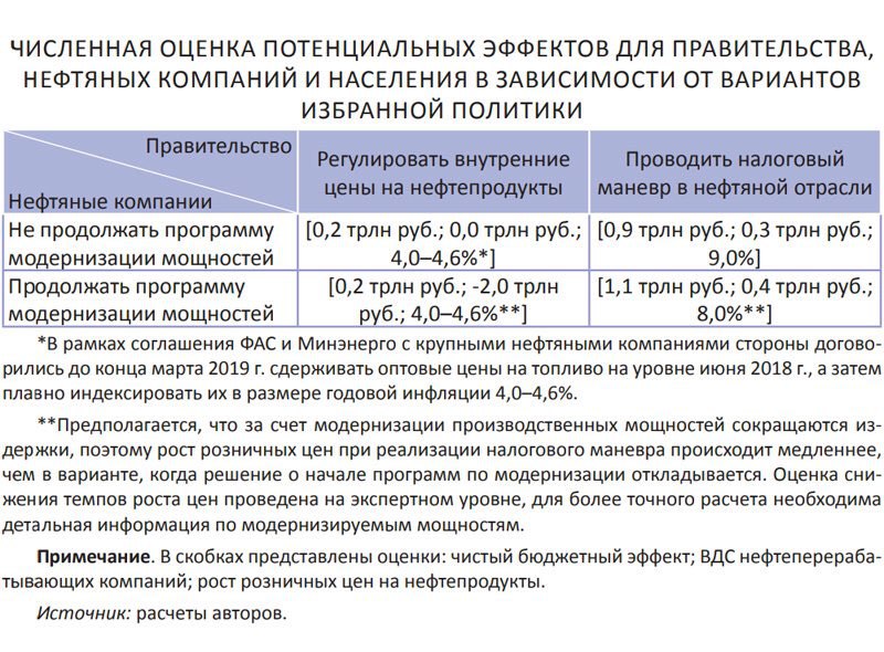 Завершение налогового маневра в нефтегазовой отрасли, которое произойдет в 2019-2024 годах, не живет вместе с заморозкой розничных цен на топливо. Чтобы достичь цели - модернизировать нефтеперерабатывающие заводы (НПЗ), уйти от неэффективных субсидий и окончательно перейти на рыночные условия работы, - оптимально было бы отказаться от регулирования цен на АЗС. Правда, в этом случае они вырастут на 8-9 процентов в 2019 г.