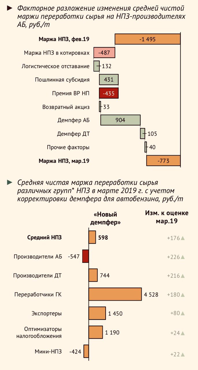 Одновременно с этим «экспортеры» (НПЗ, ориентированные на экспорт нефтепродуктов) и «оптимизаторы налогообложения» (НПЗ, нашедшие способы выводить свою продукцию из-под акцизов при реализации ее на внутреннем рынке и/или перемещать ее в товарные группы с более низкой ставкой вывозной пошлины при экспорте), важность которых для внутреннего рынка не столь очевидна, как и феврале, продолжают генерировать прибыли.