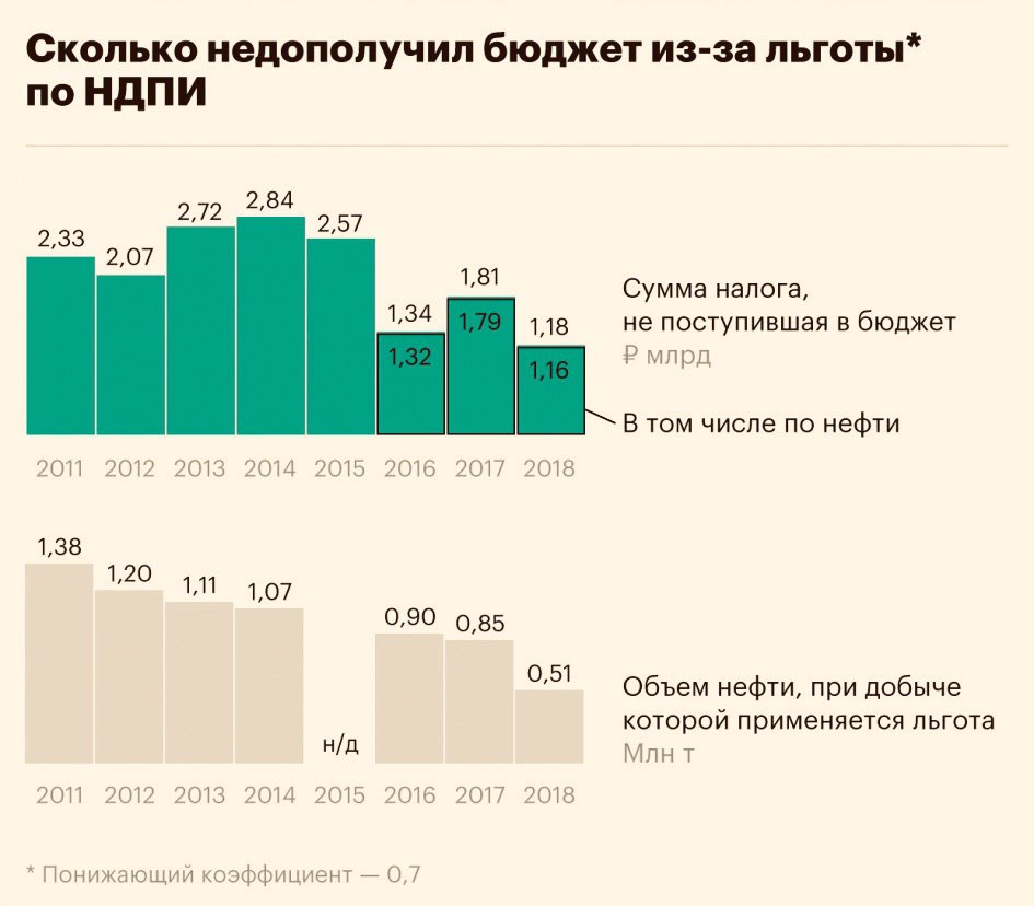 По данным Минфина, сейчас этой преференцией пользуются лишь три налогоплательщика названия компаний не раскрываются, и около 99% выпадающих доходов бюджета приходится на льготу при добыче нефти. В 2018 году льгота была предоставлена всего для 11 участков (лицензий), а объем выпадающих доходов бюджета превысил 1 млрд руб.