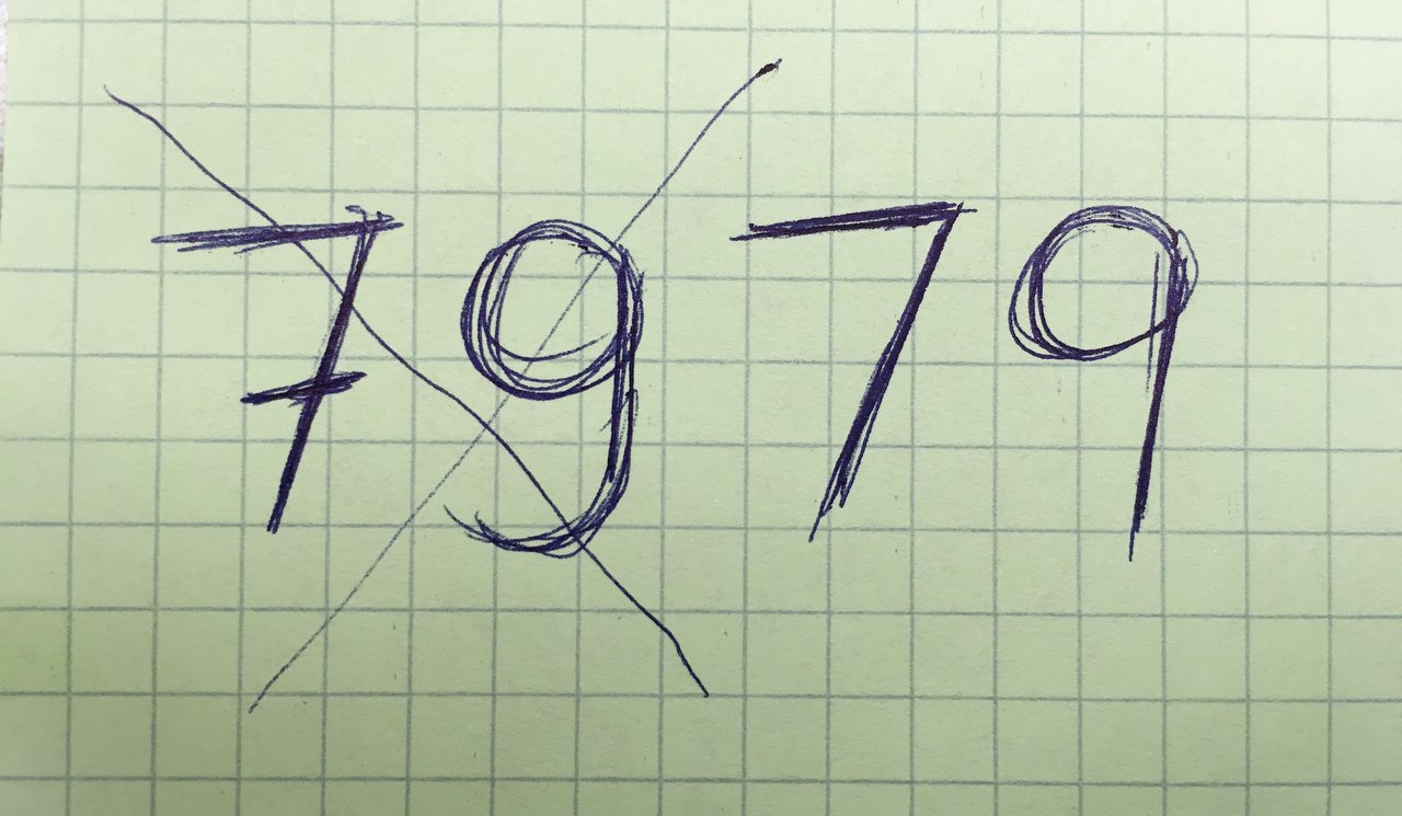 - Цифра девять от руки чаще всего пишется без хвостика внизу, потому что с хвостиком она якобы похожа на букву g.