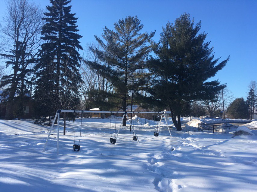 В парке и на улицах почти никого нет. Нашли пару детских площадок - пусто. Иногда можно встретить человека с собакой или лыжника.
