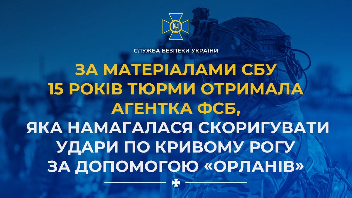 За матеріалами СБУ 15 років тюрми отримала агентка фсб, яка намагалася скоригувати удари по Кривому Рогу за допомогою «Орланів»