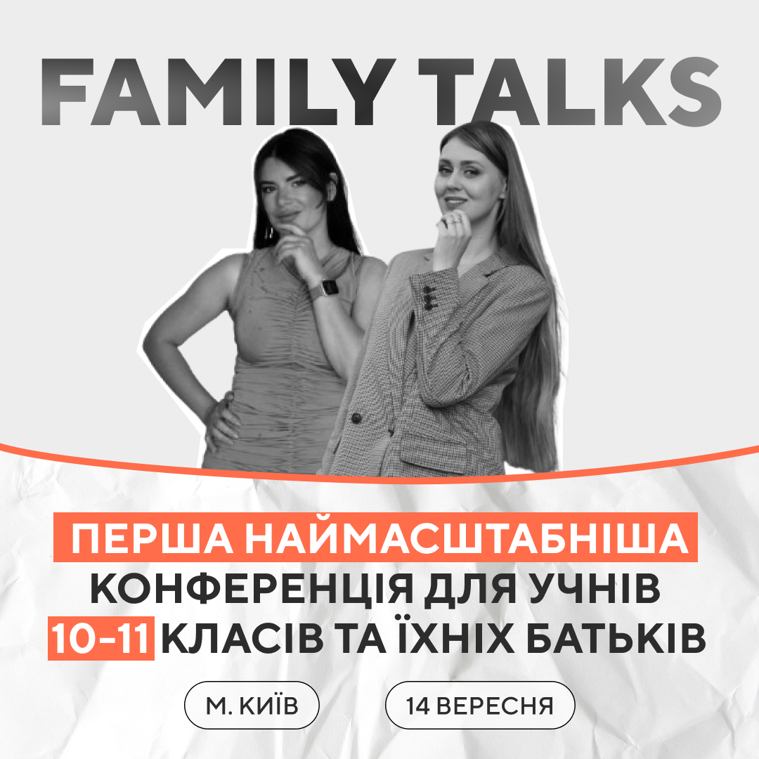 📌Запрошуємо вас на наймасштабнішу конференцію для учнів 10-11 класів та їх батьків — Family Talks💥