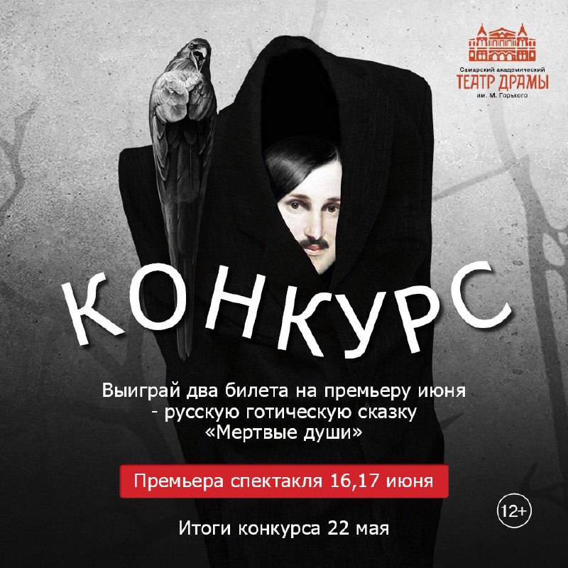 Самарская область pinned «Розыгрыш призов «🎭Билеты в Драмтеатр на премьеру спектакля «Мертвые Души»» Вместе с Самарским академическим театром драмы им.Горького мы разыгрываем два билета на премьеру июня – спектакль «Мертвые души»(12+)! Мы все знаем, о чем произведение «Мертвые души»…»