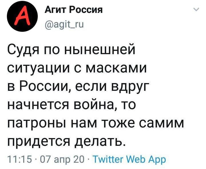 "Россия 24" ночью показывает список погибших в ВОВ, а днем статистику умерших от коронавируса. Невольное сравнение, что COVID-19 - сегодня тоже война.