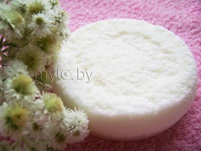 Такое мыло удобнее всего заливать в небольшие силиконовые формочки на одно применение, т.к. большой кусок может разломаться. По своему действию мыло-суфле похоже на гидрофильную плитку: оно не пенится, а образует нежное молочко.